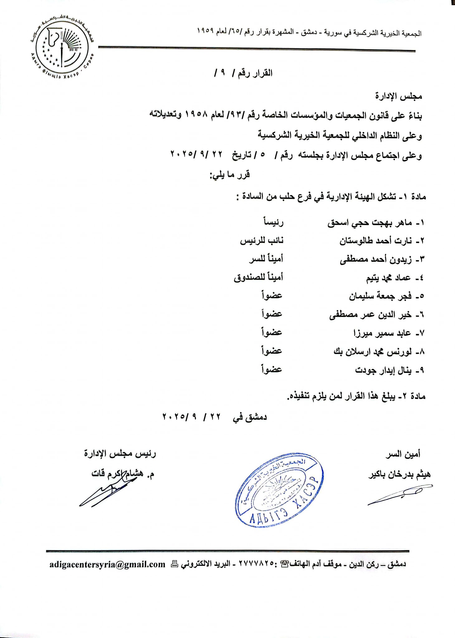 تأسست الجمعية الخيرية الشركسية في سورية عام 1948، وهي جمعية أهلية غير ربحية، وإحدى أقدم الجمعيات الأهلية في البلاد، مستندة إلى إرث طويل من العمل التطوعي، والتكافل الاجتماعي، وخدمة المجتمع الشركسي، إلى جانب مساهمتها في دعم المكونات الأخرى في المجتمع السوري، انطلاقاً من إيمانها بوحدة المجتمع وتكامل أدواره