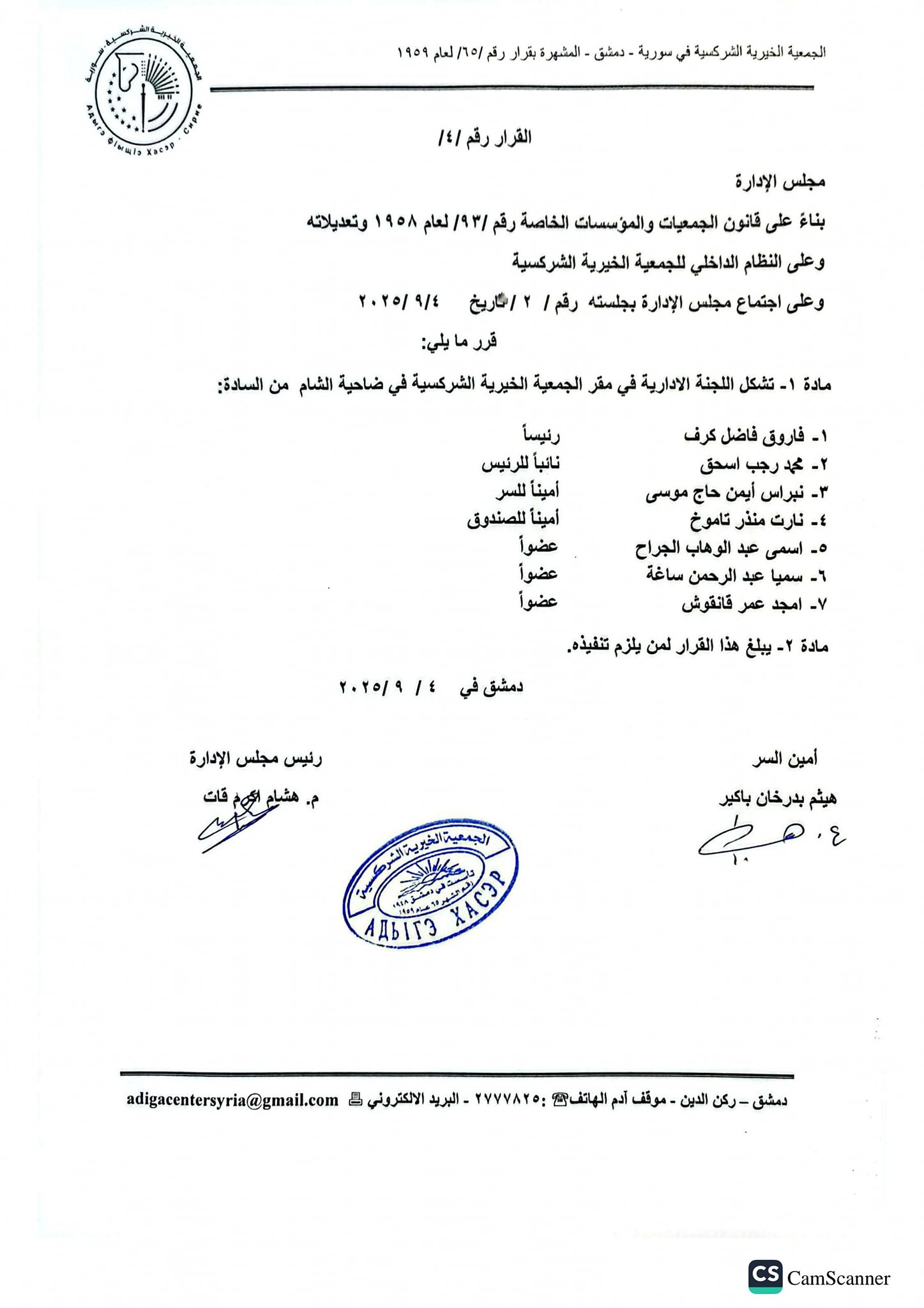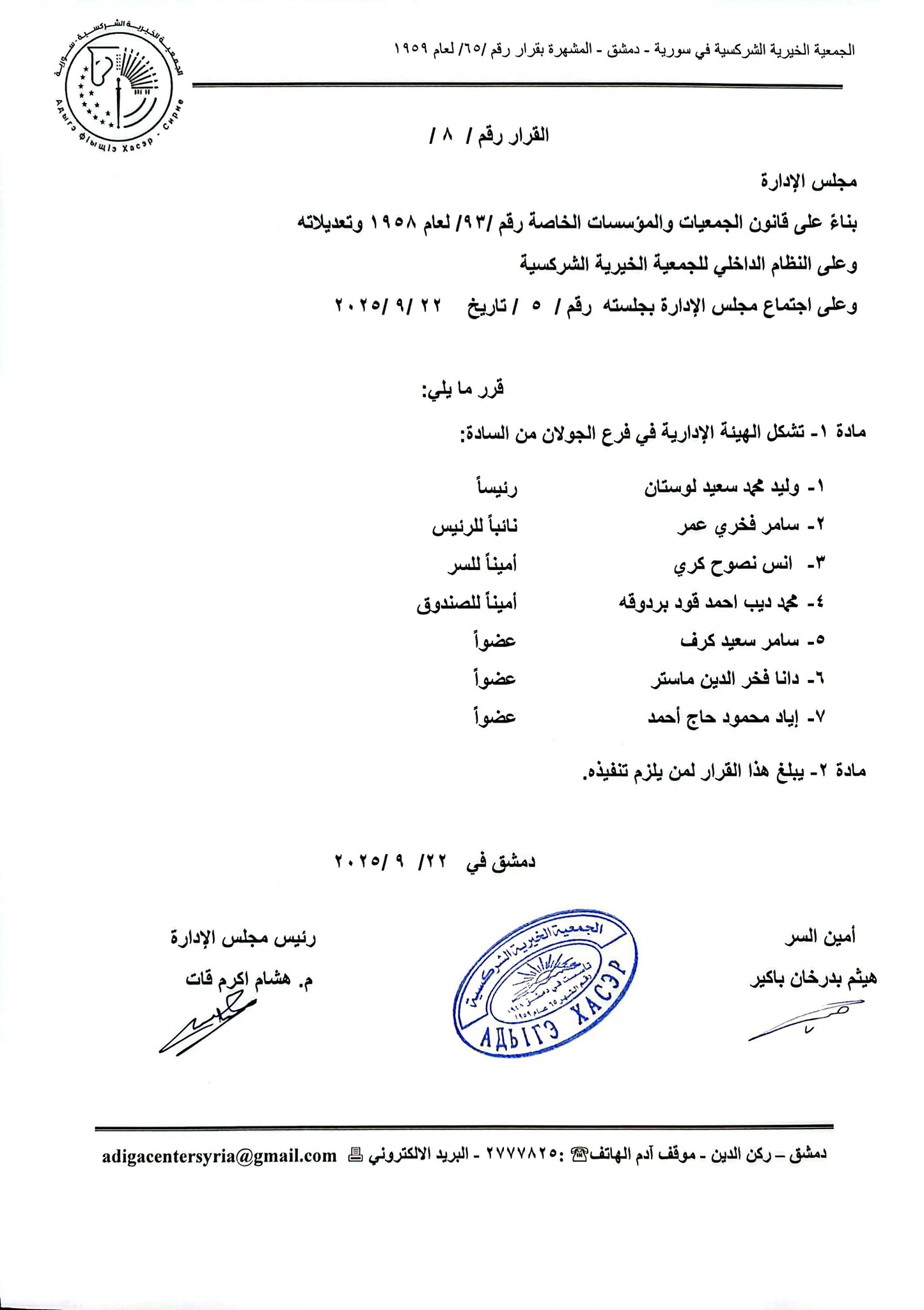 - تعمل الجمعية على خدمة المجتمع من خلال مبادرات إنسانية وتنموية مستدامة، قائمة على العمل التطوعي والمؤسسي، تركّز على بناء الإنسان وتمكين الأجيال، وتعزيز الهوية الثقافية الشركسية كقيمة مضافة، ونشر ثقافة العطاء والمسؤولية المجتمعية في مجتمع يحترم التنوع ويؤمن بالشراكة.