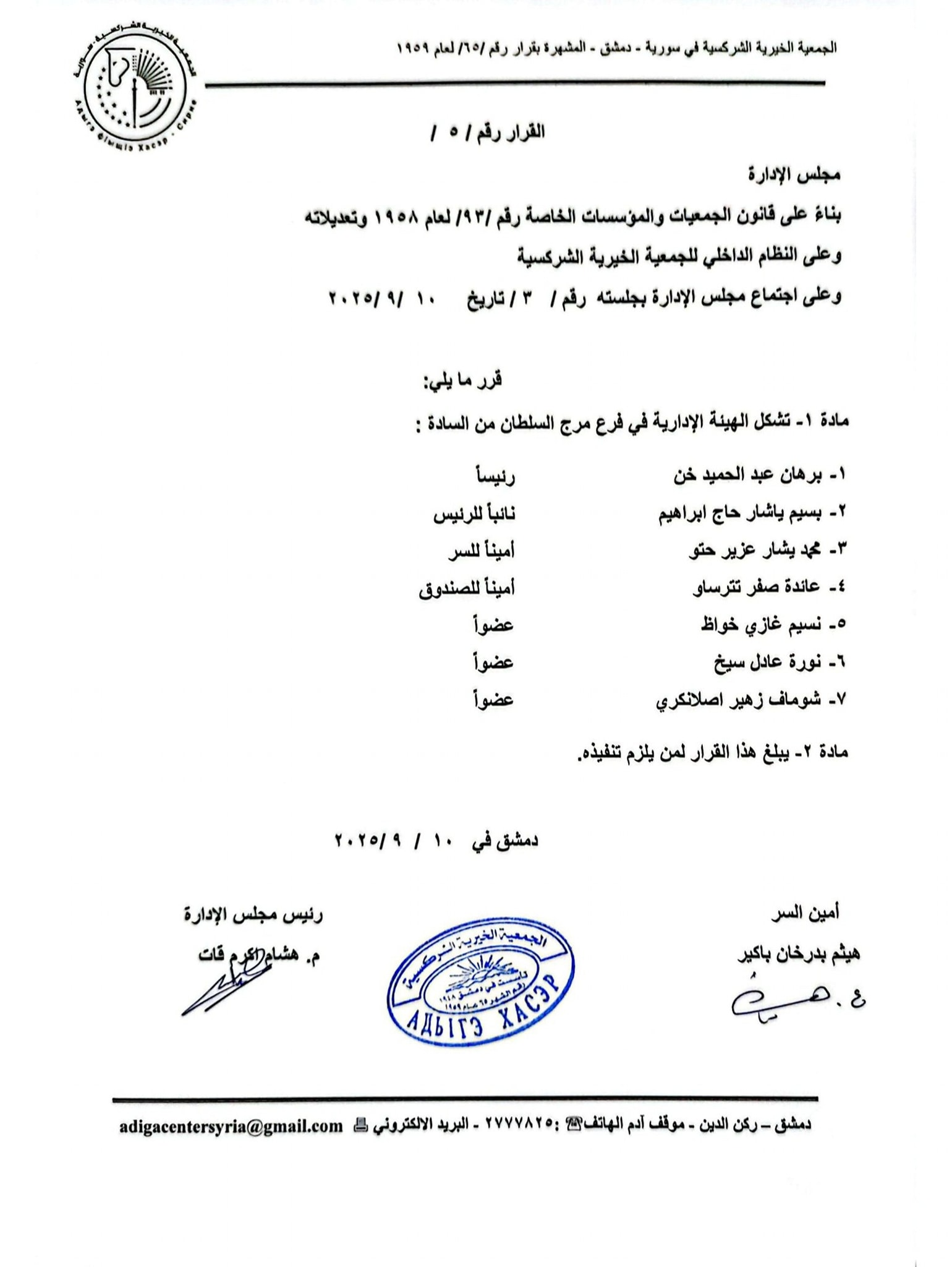 - بناء الفرد وتمكينه، وترسيخ ثقافة العمل التطوعي، ودعم الفئات المحتاجة بأساليب تحفظ الكرامة وتعزز الاعتماد على الذات، مع تمكين المرأة والشباب، وصون الهوية والتراث الثقافي الشركسي، وخلق مساحات آمنة للتفاعل المجتمعي، وبناء شراكات فاعلة تسهم في تعزيز التماسك والتعايش المجتمعي في سورية.