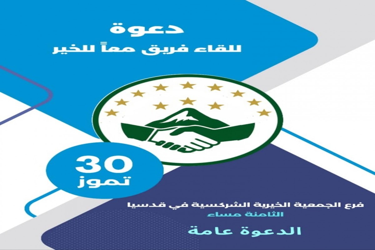 للمزيد من التفاصيلدعوة للقاء فريق معاً للخير في 30 تموز فرع الجمعية الخيرية الشركسية في قدسيا الثامنة مساء الدعوة عامة
