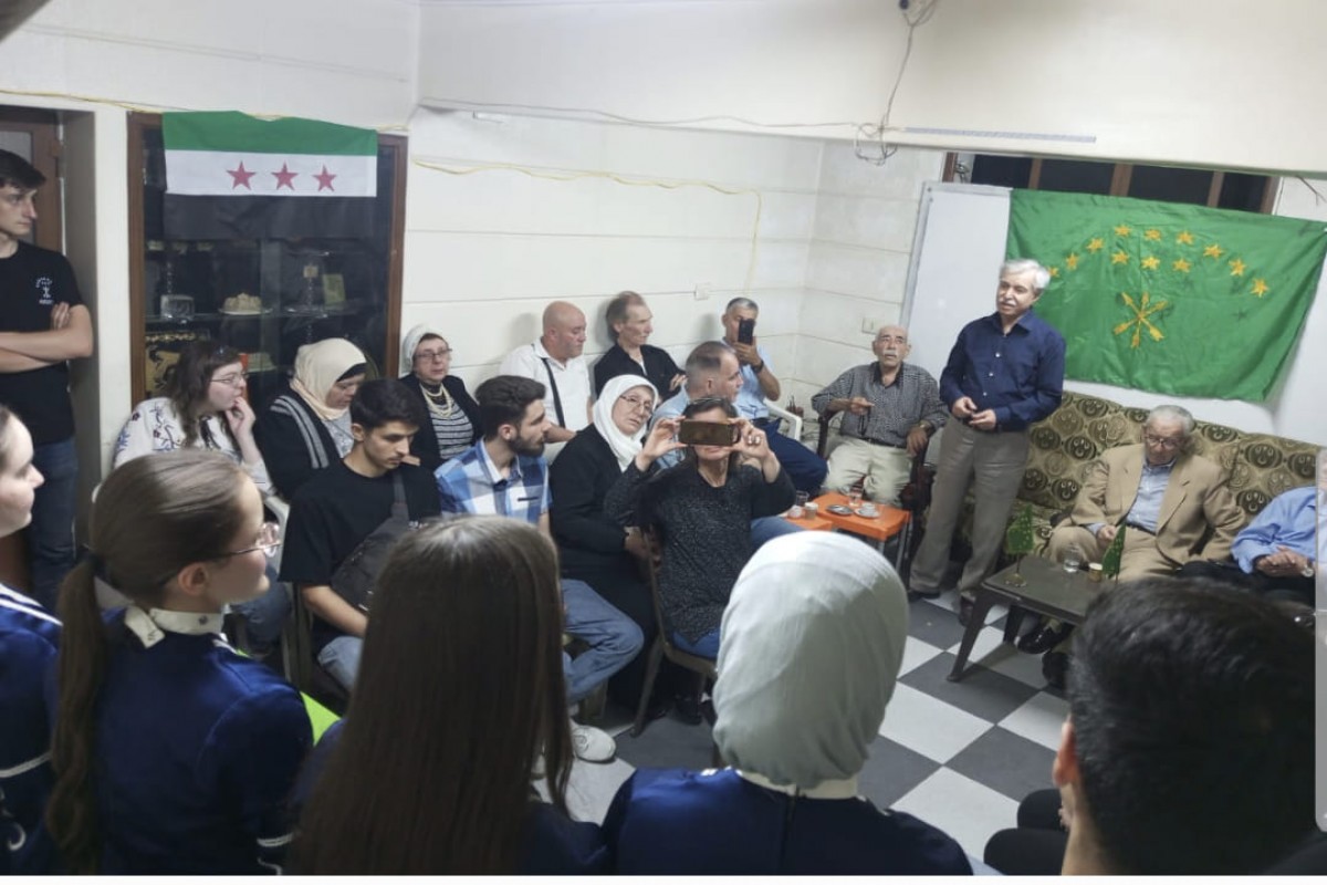 للمزيد من التفاصيلضمن احتفالات شعبنا السوري بذكرى مرور عام على التحرير.. أقيم في فرع قدسيا للجمعية الخيرية الشركسية يوم الأثنين 8 كانون الأول 2025م حفلاً منوعاً بحضور جمهور كبير من أهالي الحي والضيوف.. ومترافقة مع الهتافات والأهازيج وحمل الأعلام والفرح والسرور والألعاب النارية.. وكانت البداية مع كلمة ترحيبية ألقاها مقدم الحفل السيد زياد سعيد.. ثم تلاها كلمات للسيد رضوان بردوقة رئيس فرع قدسيا للجمعية والمهندس هشام قات رئيس الجمعية الأم والسيدة سوسن حسين.. حيث تناولت الكلمات معاني التحرير وتطلعات الشعب لبناء سوريا حديثة ومتقدمة ومتطورة.. قدمت بعدها الصبيتان لارا ومارينا باسيل اسماعيل فقرة شعرية من أجواء المناسبة الوطنية.. تلى ذلك فقرة غنائية لأطفال الحي من مدرسة رياض خليل الأولى بعنوان (أرفع راسك فوق أنت سوري حر).. وكان لفرقة الجمعية للرقص التراثي الشركسي فقرة مميزة وحماسية.. وفي الختام أستمع الجميع لفقرة غنائية من الطرب والأغاني الجميلة.. تفاعل معها الحضور بالمشاركة والتصفيق.. وتوجه بعدها الجميع إلى القاعة المغلقة لحضور المعرض الفني لرسومات شارك بها أطفال الحي..